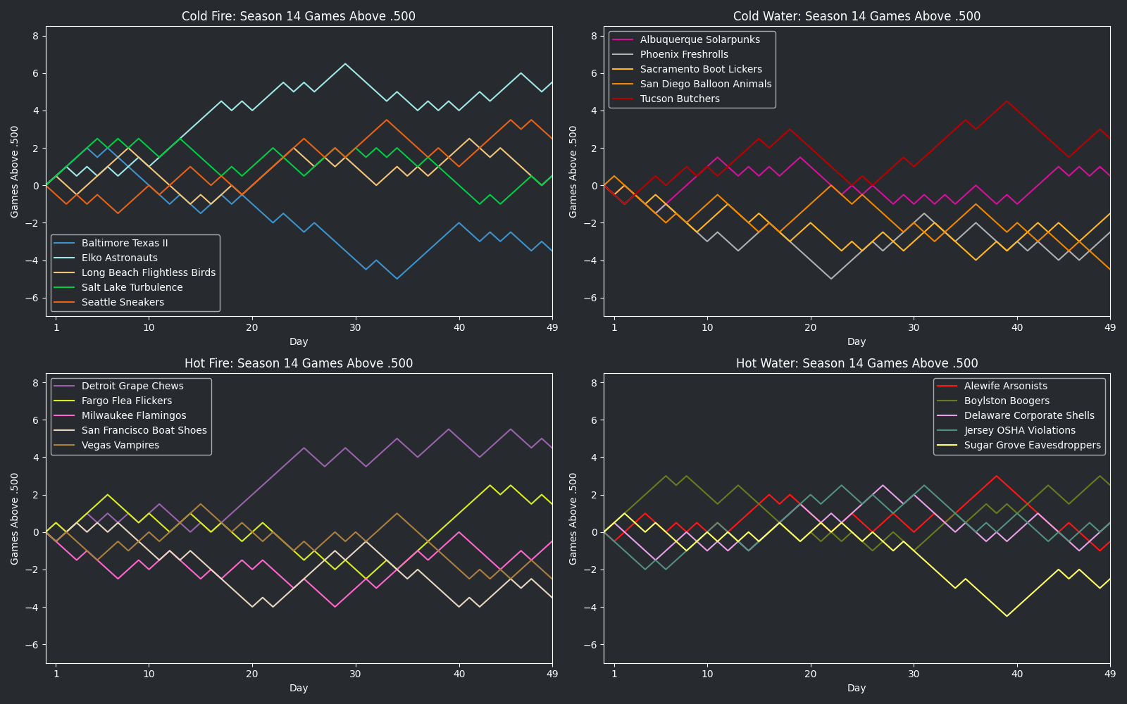 Graph of games above .500 for HellmouthVI Cup Season 14