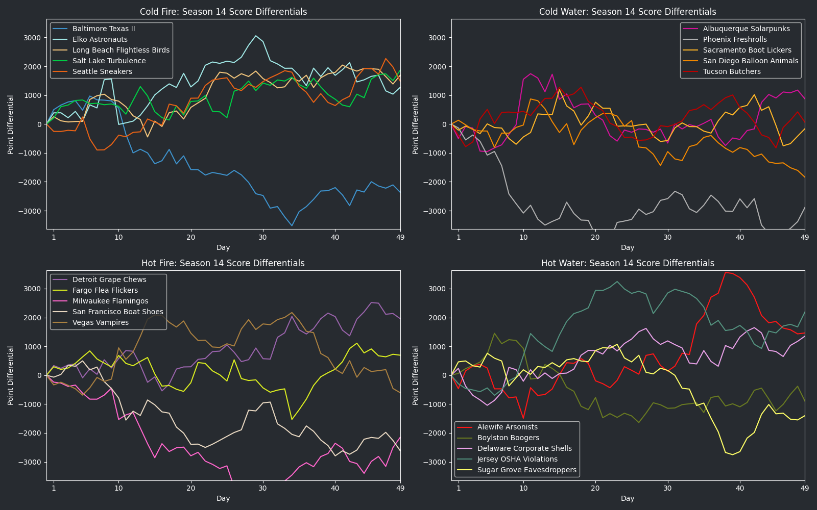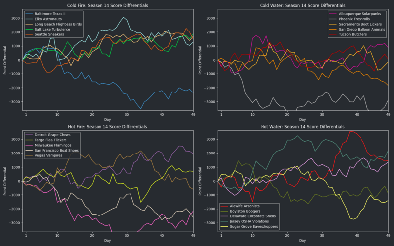 Graph of run differentials for HellmouthVI Cup Season 14