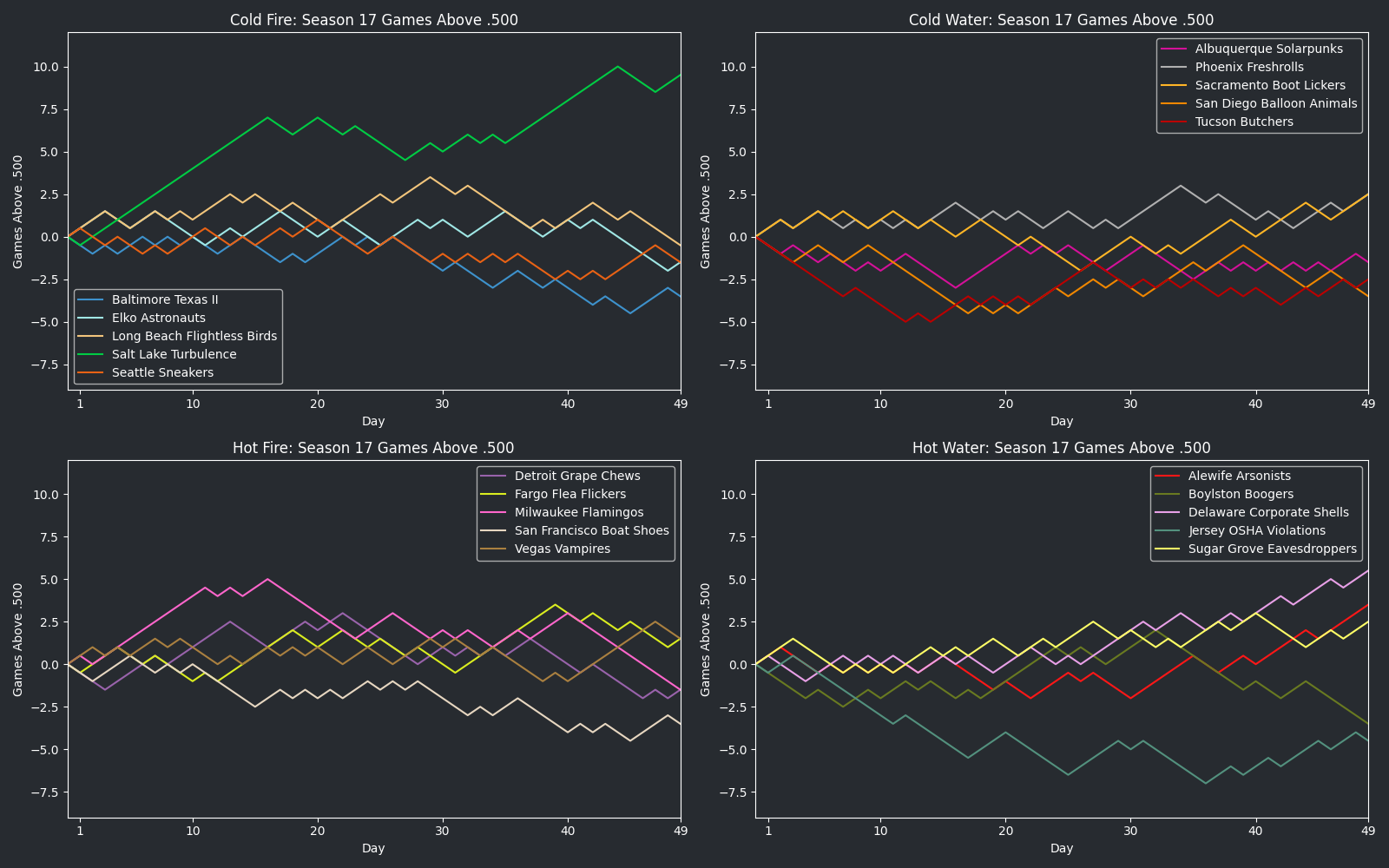 Graph of games above .500 for HellmouthVI Cup Season 17