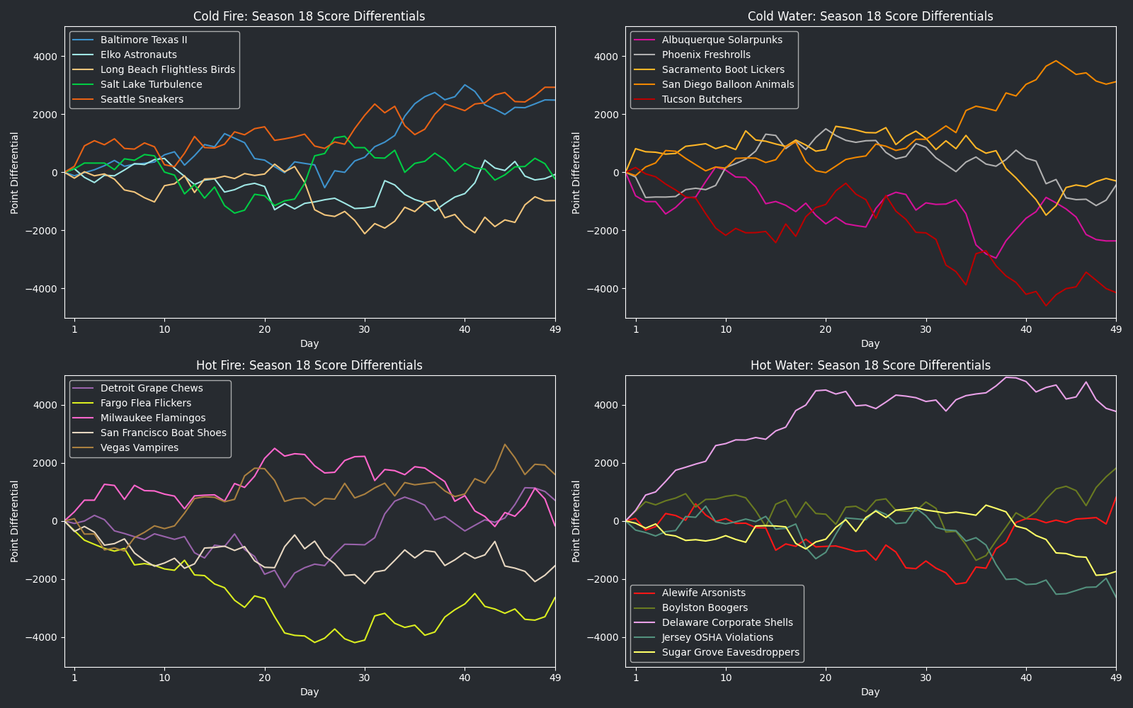 Graph of run differentials for HellmouthVI Cup Season 18