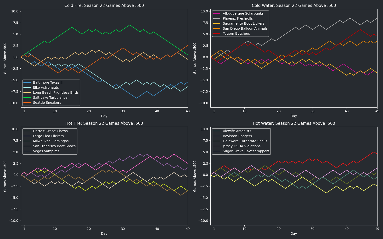 Graph of games above .500 for HellmouthVI Cup Season 22