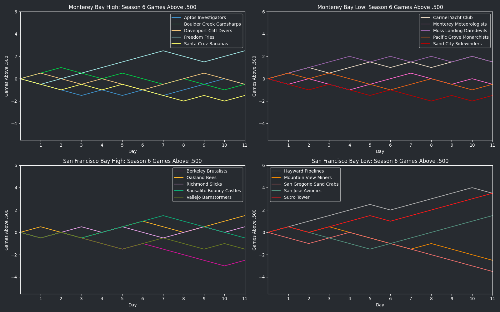 Graph of games above .500 for StarVII Cup Season 6