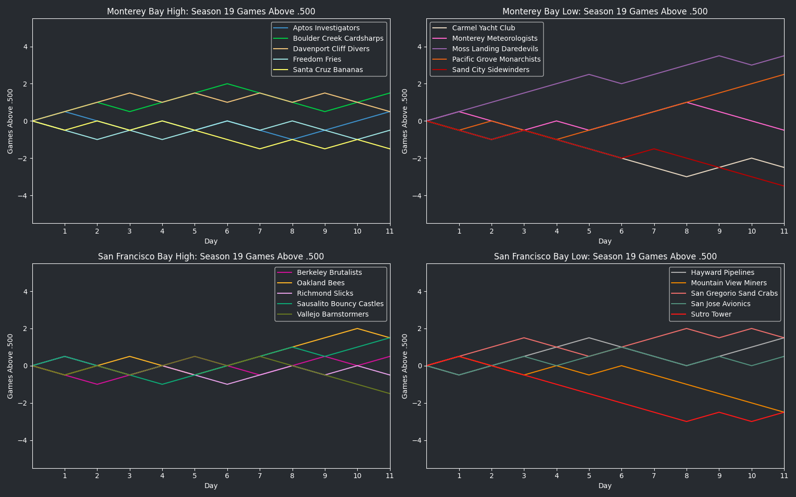 Graph of games above .500 for StarVI Cup Season 19